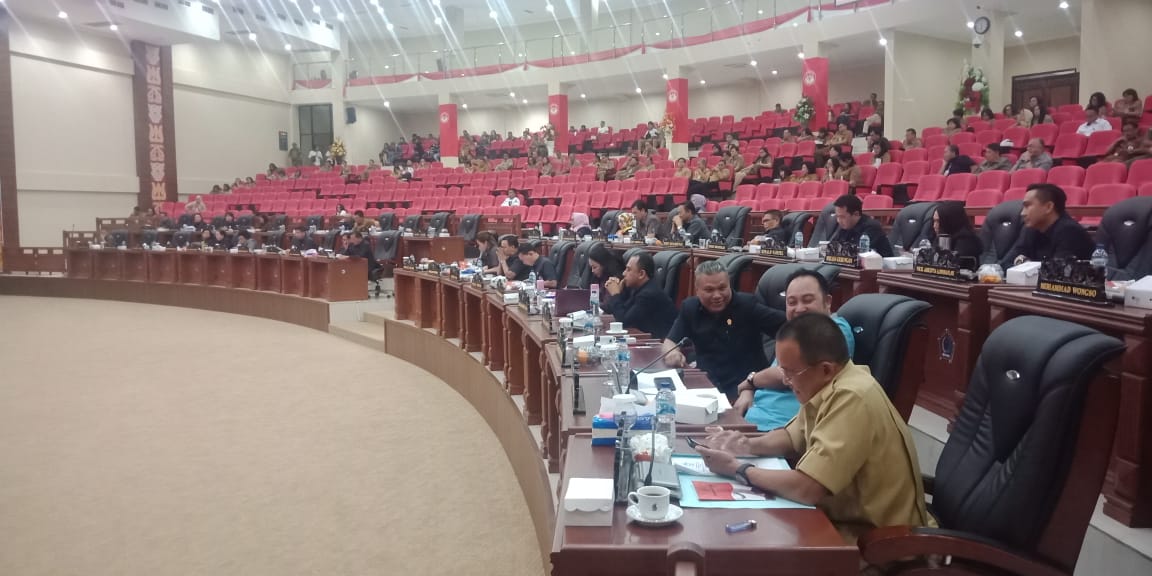 Manado, detiKawanua.com – DPRD Provinsi Sulut menggelar Rapat Paripurna  Mendengarkan Penjelasan Gubernur terhadap Rancangan Peraturan Daerah (Ranperda) Anggaran Pendapatan Belanja Daerah (APBD) Tahun Anggaran (TA) 2020 dan Pemandangan Umum Fraksi-fraksi DPRD Sulut, Selasa (05/10) di Gedung Paripurna DPRD Provinsi Sulut.