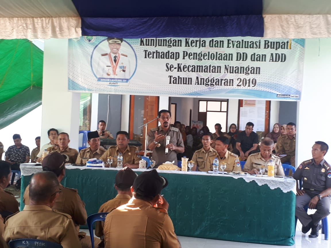 Demikian disampaikan Bupati saat mengevaluasi pengelolaan Dana Desa (Dandes) dan Alokasi Dana Desa (ADD) se Kecamatan Nuangan.