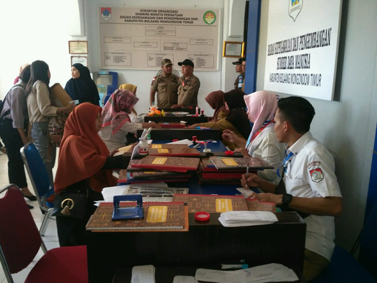 Para pelamar CPNS Boltim saat memasukan berkas, Senin (25/11).