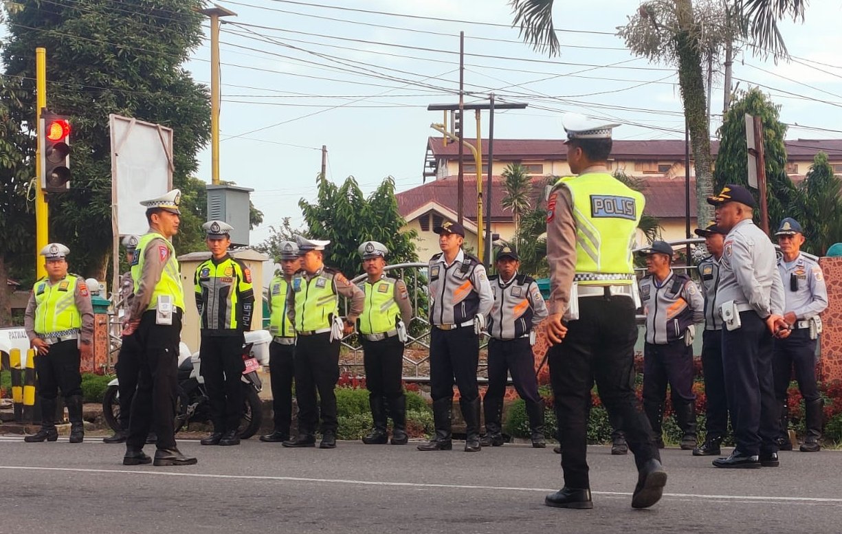 (Foto: Saat Sat Lantas Polres Kotamobagu menggelar Apel bersama Dishub Kotamobagu).