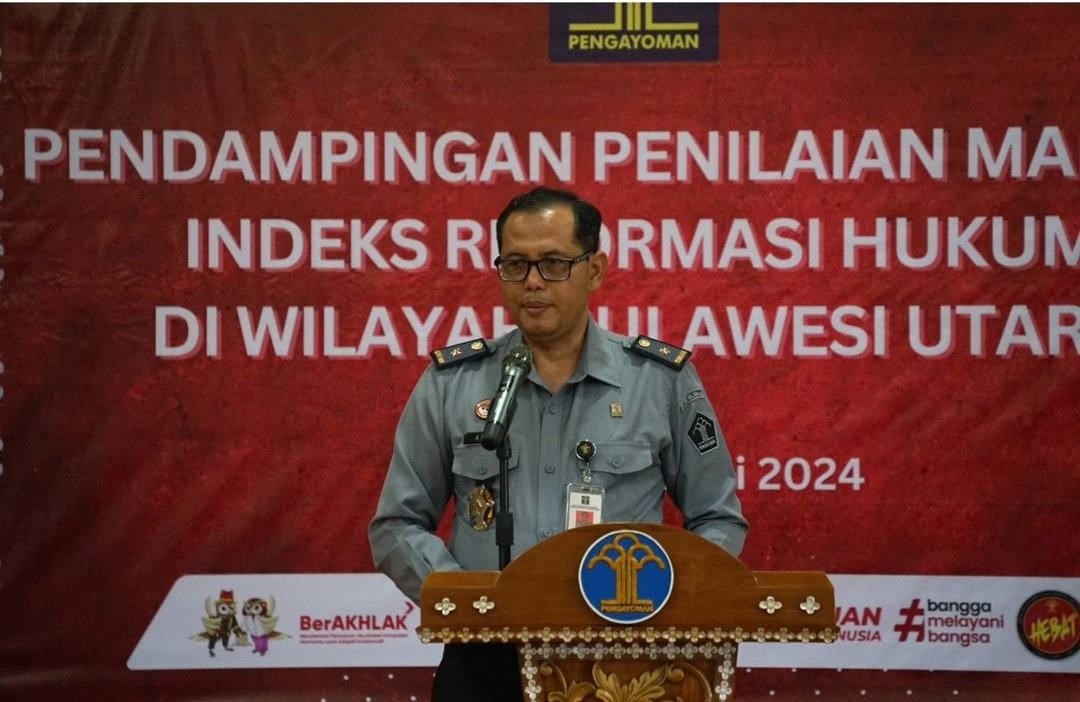 Manado, detiKawanua.com – Kepala Kantor Wilayah Kementerian Hukum dan HAM Sulawesi Utara Ronald Lumbuun melalui Plh Kepala Divisi Pelayanan Hukum dan HAM, Aris Munandar membuka kegiatan Pendampingan Penilaian Indeks Reformasi Hukum (IRH) yang dihadiri oleh Kepala Divisi Administrasi, John Batara Manikallo, Kepala Divisi Keimigrasian, Efendi Sitorus serta perwakilan dari Pemerintah Daerah Provinsi Sulawesi Utara yang berlangsung di Aula Mapalus Kantor Wilayah, Selasa (11/6/2024).