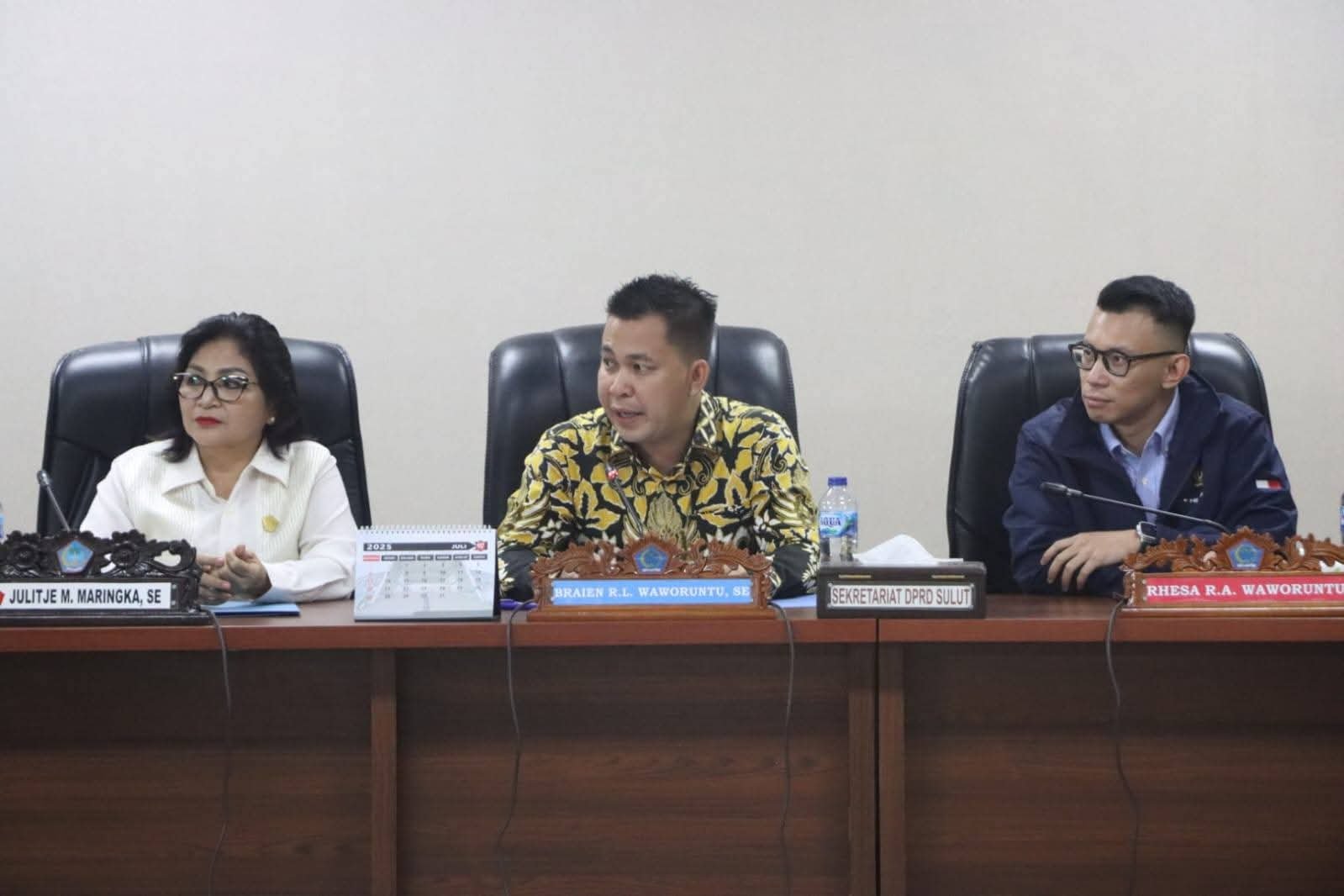 Rapat dipimpin Ketua Komisi I DPRD Sulut, Braien Waworuntu didampingi Wakil Ketua Rhesa Waworuntu dan Sekretaris Jultje Maringka bersama Forkopimda Provinsi Sulut.