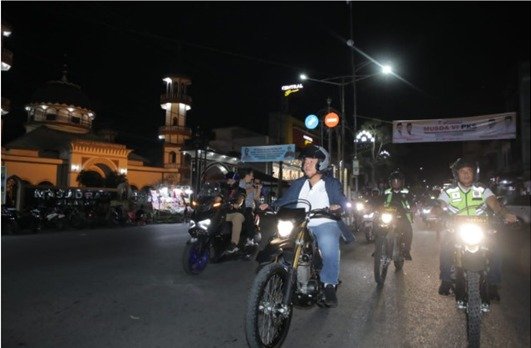 Bupati Asahan Taufik Zainal Abidin S.Sos, M.Si bersama Wakil Bupati Rianto SH, MAP, Ketua DPRD H. Efi Irwansyah Pane MKM, Kapolres AKBP Revi Nurvelani SIK, MH, Dandim 0208/AS Letkol Inf Edy Syahputra SH, M.Han, Kajari Basril G SH, MH, dan sejumlah Kepala OPD, menggelar patroli malam menggunakan sepeda motor, Jumat malam (05/09/2025).