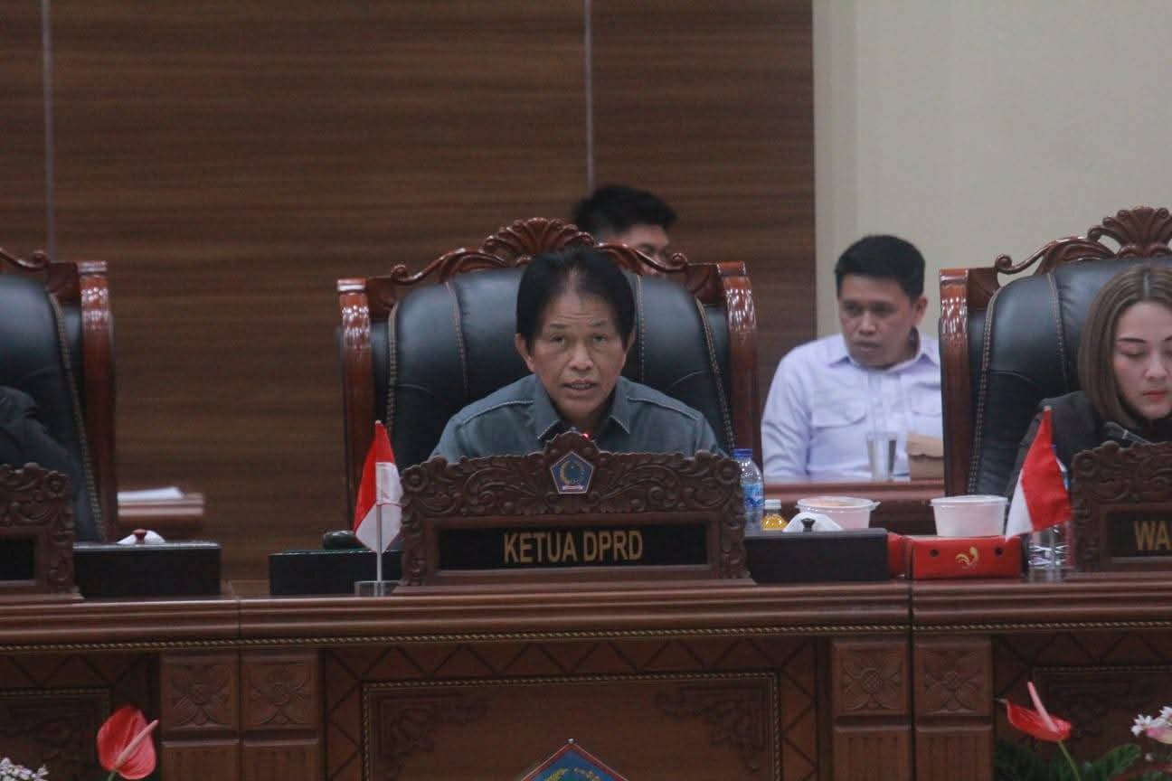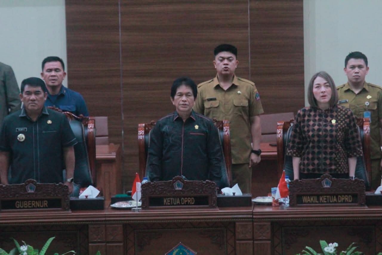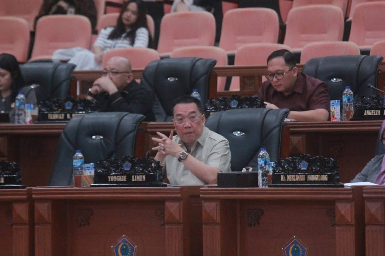 Rapat paripurna dipimpin Ketua DPRD Sulut, Fransiskus Andi Silangen didampingi Wakil Ketua Michaela Paruntu, Royke Anter, Stela Marlina Runtuwene, dan dihadiri Gubernur Sulut Yulius Selvanus dan Wagub Victor Mailangkay.