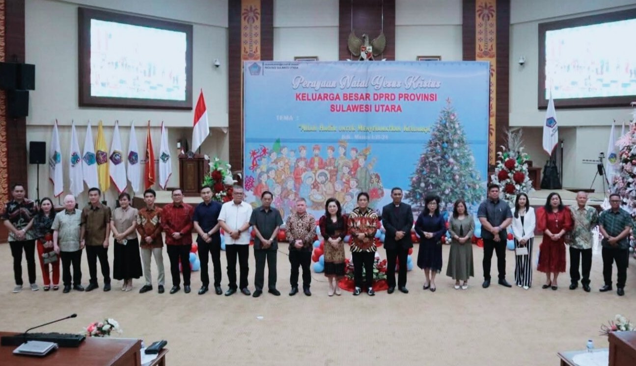SULUT – Suasana penuh damai dan sukacita memenuhi Ruang Rapat Paripurna DPRD Sulawesi Utara pada Senin, 8 Desember 2025. Ruangan yang biasanya digunakan untuk agenda politik dan pembahasan kebijakan publik itu berubah menjadi tempat ibadah penuh kehangatan dalam perayaan menjelang Natal bersama keluarga besar DPRD Sulut.
