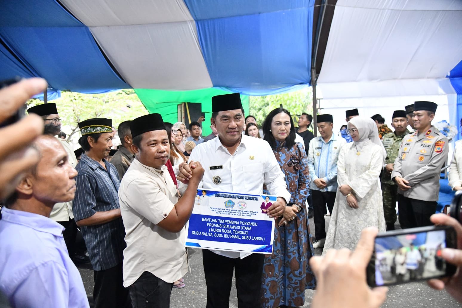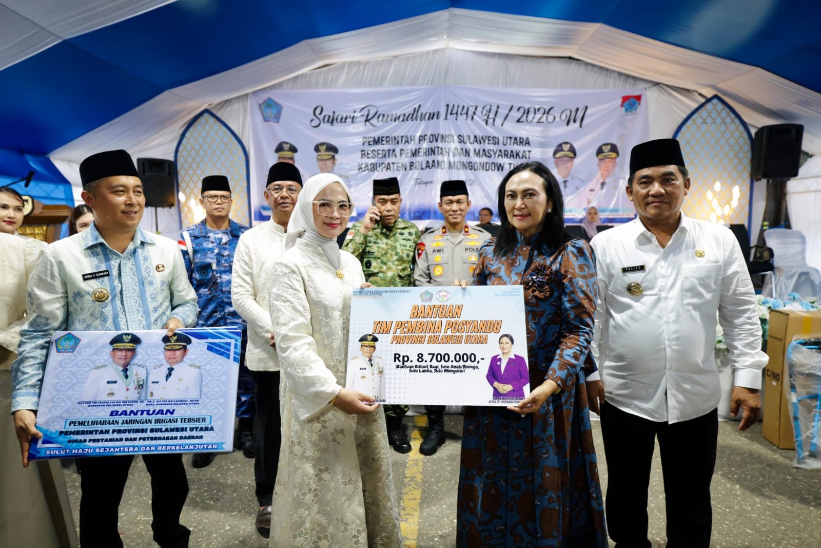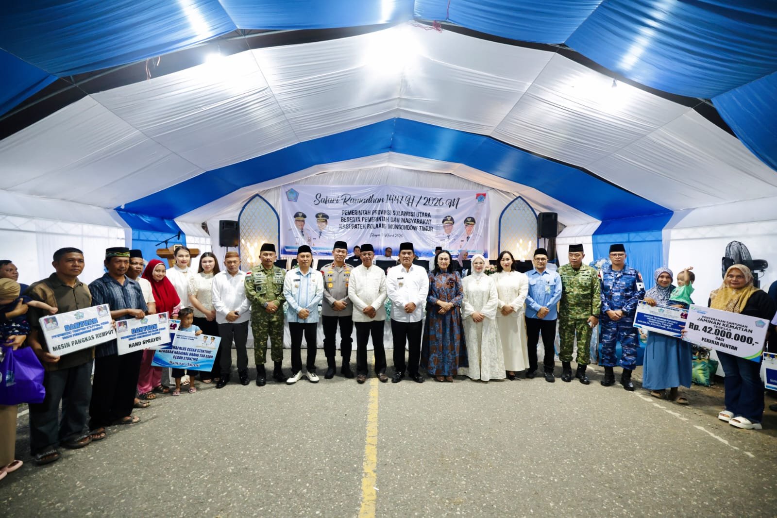 Dalam Safari Ramadan tersebut, Gubernur Sulut turut menyerahkan berbagai bantuan kepada masyarakat Kabupaten Boltim secara simbolis. Bantuan tersebut antara lain penyerahan 26 Sertifikat Hak Milik (SHM) tanah transmigrasi kepada warga Transmigrasi UPT Motongkad.