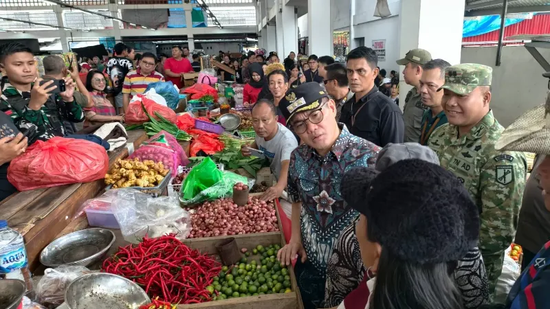 Kunjungan tersebut dilakukan di Pasar Airmadidi, Sabtu (14/3/2026), sebagai bagian dari langkah Pemerintah Kabupaten Minahasa Utara menjaga stabilitas pangan dan melindungi daya beli masyarakat.