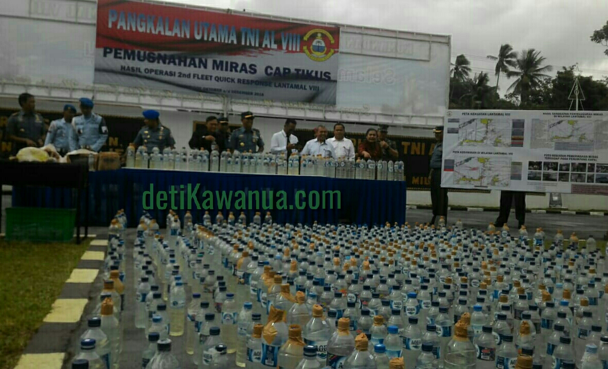 Komandan Lantamal VIII Manado Laksamana Pertama TNI Gig Jonies Mozes Sipasulta yang memimpin langsung pemusnaan Miras jenis Cap Tikus tersebut mengatakan, miras jenis Cap Tikus yang dimusnakan adalah hasil operasi 2nd Fleet Quick Response Lantamal VIII periode bulan Oktober hingga Desember 2018.