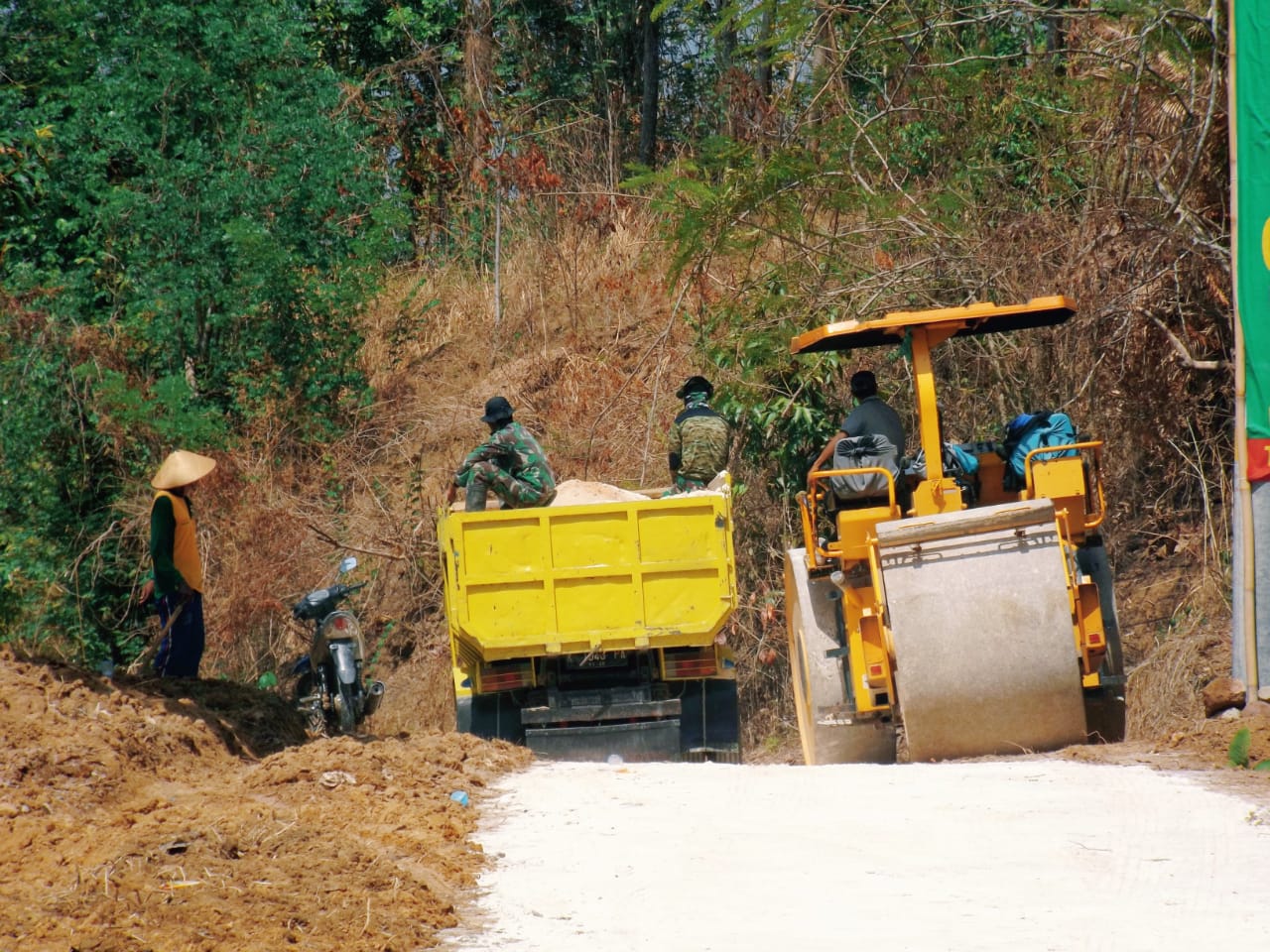 Jalan yang hanya berupa tanah dan bebatuan, berliku dan menanjak, membuat proses pengerjaan program ini menjadi lebih extra penangannya. Karena itulah pengerjaan sasaran TMMD selalu melibatkan tenaga mesin, berupa alat berat, dump truck dan molen.