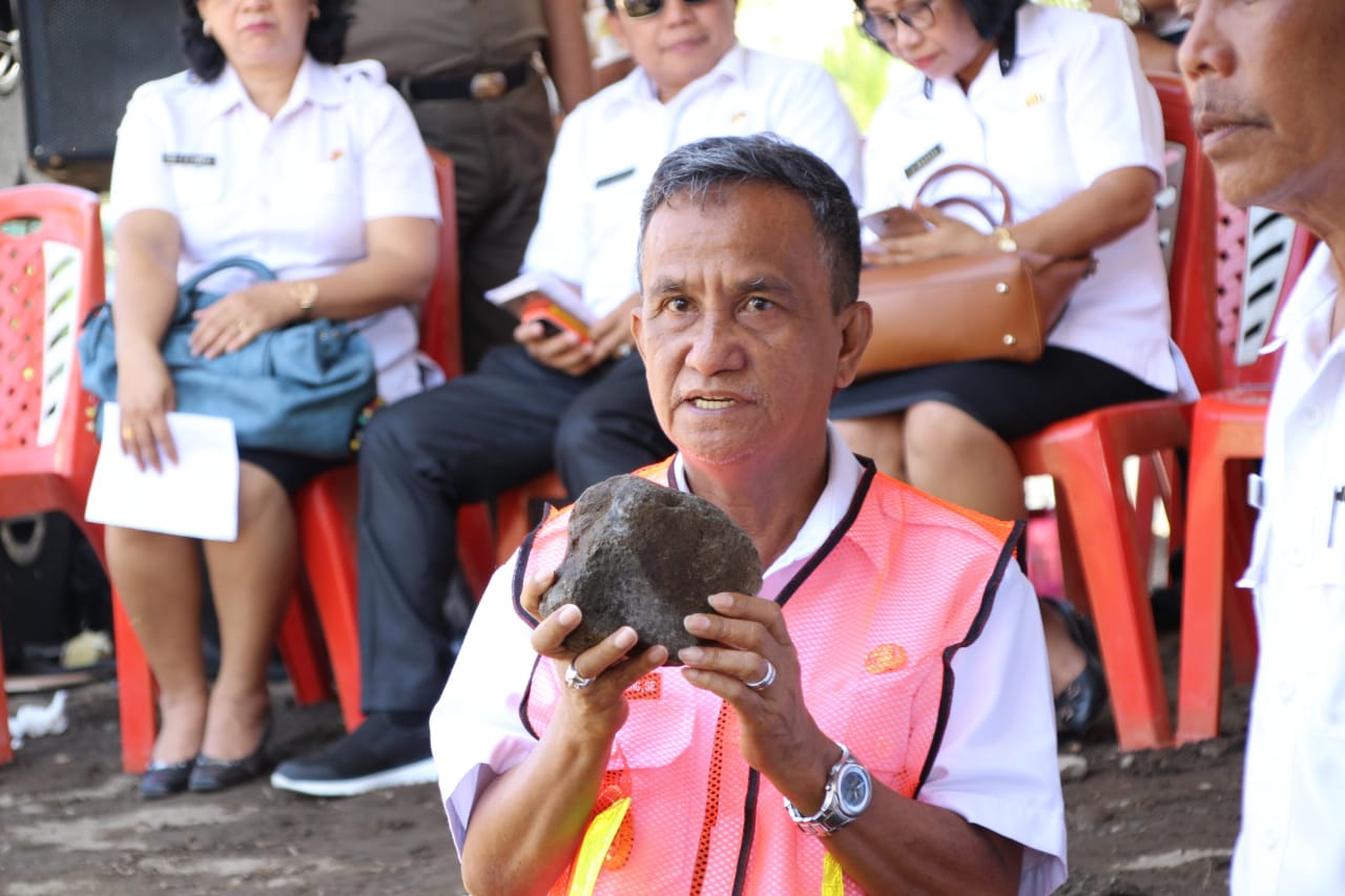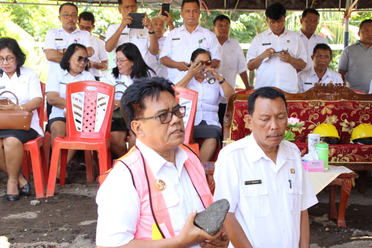 Dalam Proses Peletakan Batu Pertama ini, Bupati didampingi Wakil Bupati Helmut Hontong SE, Kadis Dispora Henro Kawuka, Ketua KONI Sangihe Novi Tampi, dan pejabat dilingkup pemerinta Kabupaten Sangihe